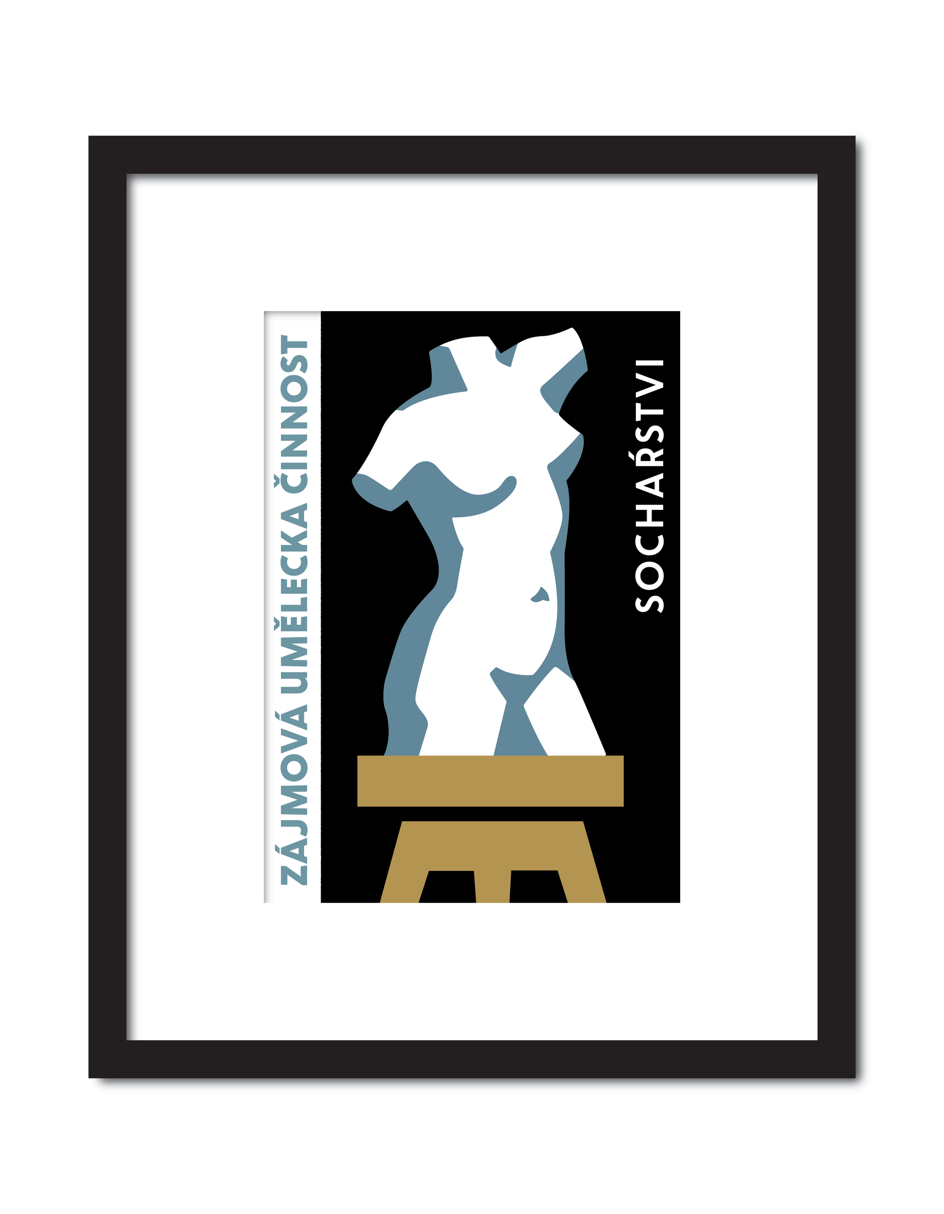 A colorful hand-pulled screen print of a Grecian statue from a vintage Czech matchbook cover